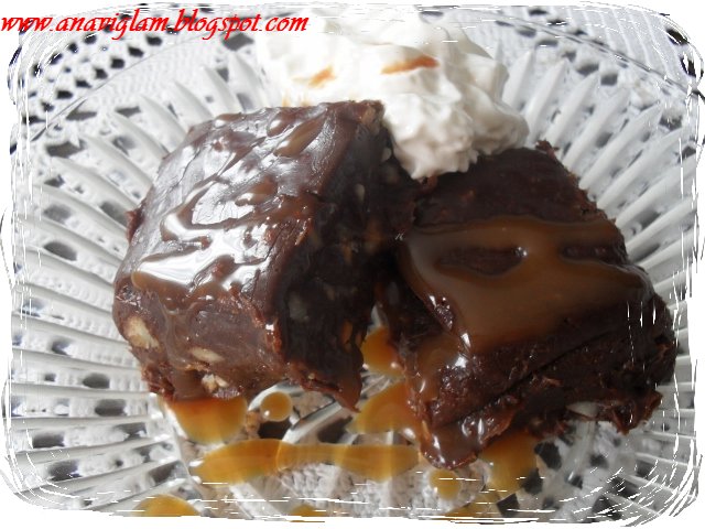 …spremala sam jučer večeru i trebao mi je brzinski recept za desert…ispalo je ovo; SASTOJCI; 250g čokolade (ja miješam onu za kuhanje, onu za jesti od 75% kakaa i mliječnu)150g poprženih i grubo nasjeckanih lješnjaka i badema340-400ml kondenziranog mlijeka (ovisi koliko ispane a možete i kupiti u Lidlu ugušćeno mlijeko)100g maslaca150g smeđeg šečera3 vanil šećera (burbon vanilija) Dakle, u kondenziranom mlijeku na laganoj vatri otopite maslac, šečer i vanil šečer, kada se otopilo pojačate vatru i kuhate uz obavezno mješanje dok se ne zgusne (cca 10-15min) te dodate nasjeckanu čokoladu te otopite i na kraju lješnjake i bademe. Sve dobro…